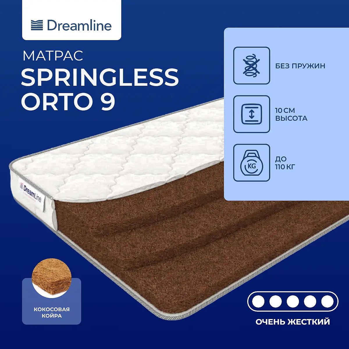 Матрас экстремальной жесткости «DreamLine Springless Orto 9» — для любителей спать буквально «на доске» или для новорожденных.